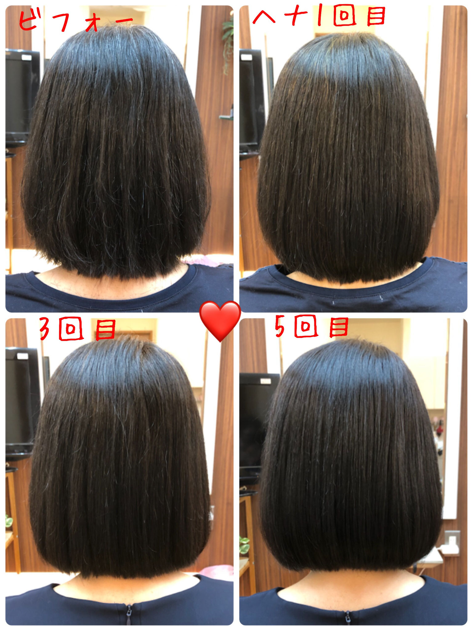 ジアミンの入っていないカラーをして、耳がただれたようになったとお聞きして、これはヘナが良いかもしれないと思いご提案させていただきました。