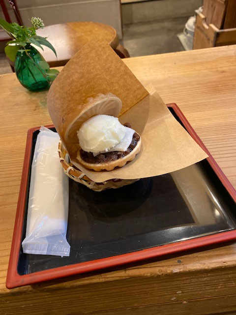 娘の母校京都工芸繊維大学、出町柳、京都御所の中を通って、御所南の「種嘉」さんへ。お土産にモナカの詰め合わせ(普通の最中・ピーナッツ・アーモンド・クルミ)を買いました。注文を受けてから作って下さるので、待っている間に、アイス最中をいただきました。本当に美味しい。