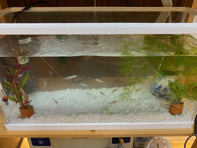 メダカ十数匹、沼エビ、水草などを頂き、アンファンには今、メダカ水槽が設置されています。ユーチューブで勉強しつつ、メダカのお世話をしています。お詳しいお客様は、是非アドバイスを下さい。