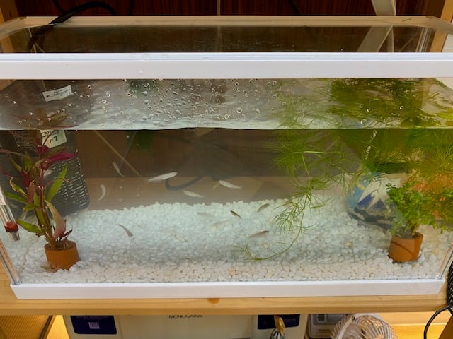 メダカ十数匹、沼エビ、水草などを頂き、アンファンには今、メダカ水槽が設置されています。ユーチューブで勉強しつつ、メダカのお世話をしています。お詳しいお客様は、是非アドバイスを下さい。